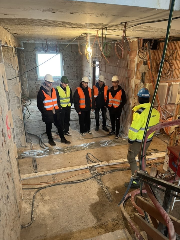 Exkurzí je provedl hlavní stavbyvedoucí Ing. Tomáš Bulawa, který studentům přiblížil nejen samotný projekt, ale i každodenní práci na stavbě – od plánování až po finální realizaci.